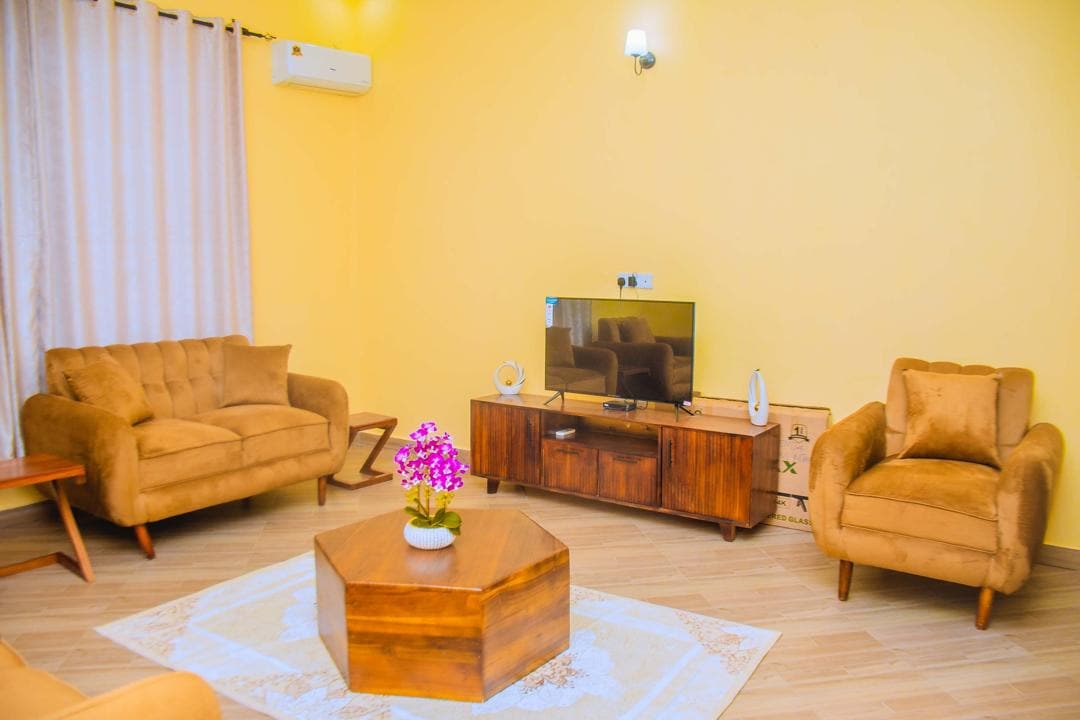 Chào mừng bạn đến với Căn hộ Cool Stay ở Nzuguni, Dodoma Sáu ngôi nhà 2 phòng ngủ giống hệt nhau, được trang bị đầy đủ tiện nghi được thiết kế để mang lại sự thoải mái và yên bình. Tận hưởng bữa sáng miễn phí, Wi-Fi, giặt ủi, điều hòa không khí và vệ sinh hàng ngày. Thư giãn trong một không gian hiện đại với TV Hisense, loa soundbar và bếp. Đón miễn phí, bảo vệ 24/7 và hướng dẫn viên địa phương giúp bạn có thời gian lưu trú dễ dàng và khó quên.