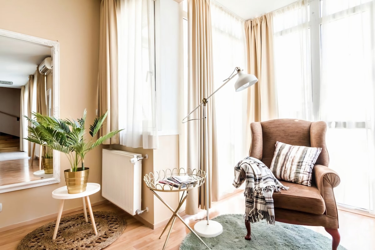 Retro Chic 2 phòng ngủ tại Trung tâm có ban công