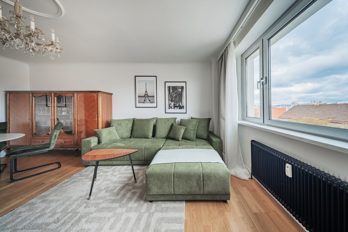 Trải nghiệm sự sang trọng với tầm nhìn tuyệt vời! Căn hộ sang trọng đầy phong cách này cung cấp mọi thứ: bếp đầy đủ tiện nghi với máy pha cà phê Nespresso, khu vực ăn uống ấm cúng, TV thông minh lớn và Wi-Fi nhanh. Từ tháng 5 đến tháng 9, hồ bơi nước nóng trên tầng thượng là nơi lý tưởng để tắm nắng và làm mát. Nhờ vị trí hàng đầu (tàu điện ngầm ở góc phố), bạn có thể đến trung tâm thành phố Vienna trong vài phút. Thời gian ở ngắn hạn (dưới 31 đêm) có thể lên đến tối đa. Có thể là 90 ngày mỗi năm. Trong thời gian dài hơn, chúng tôi cung cấp chỗ ở cho thuê theo tháng.