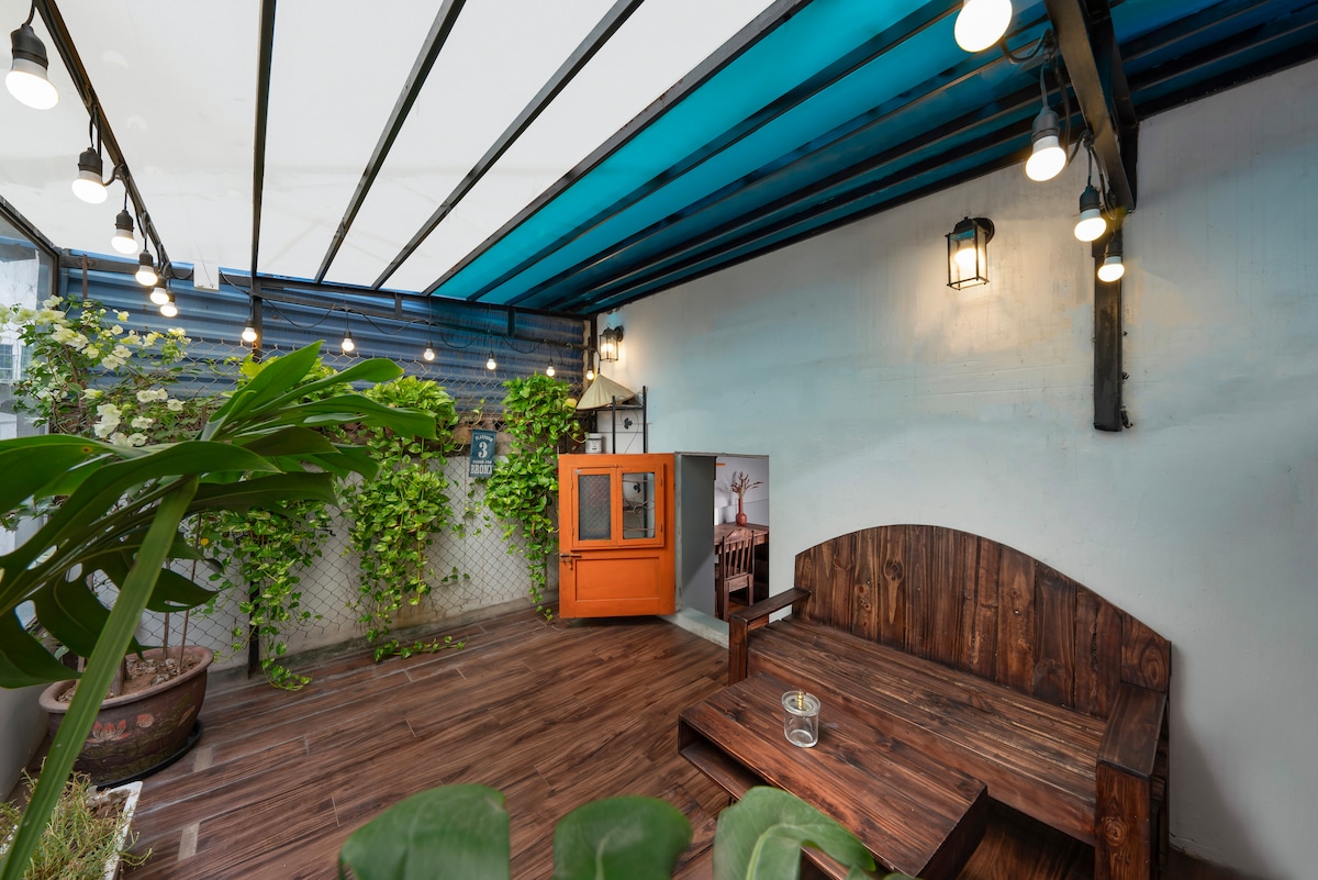 Nestled in an old communal building in Lang Ha, stepping up 7 staircases reveals a cozy home. The house is fully equipped with a spacious living area, bright living room, kitchen, balcony and free laundry. It's a perfect place for short trips or business stays. "Staircase Hideout" unfolds the dialogue between the old and the new, a microcosm on the Vietnamese way of living. Welcome to experience Hanoi from a different perspective, a modernized street that still lives the essence of folk culture!