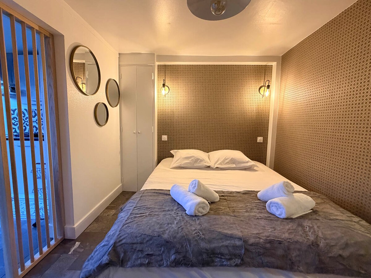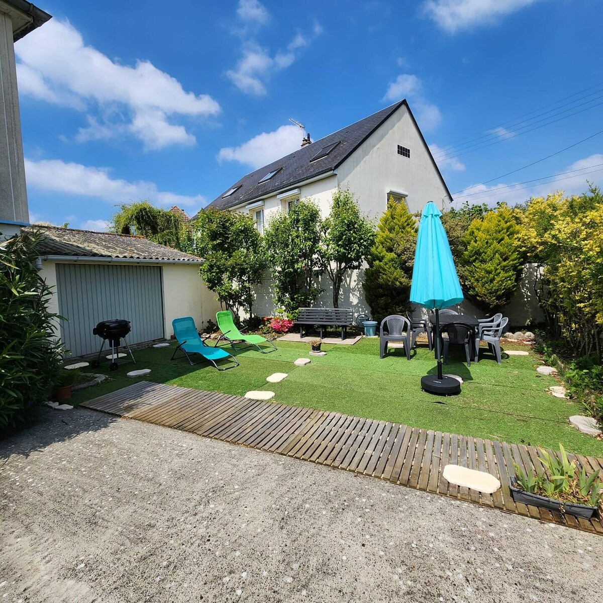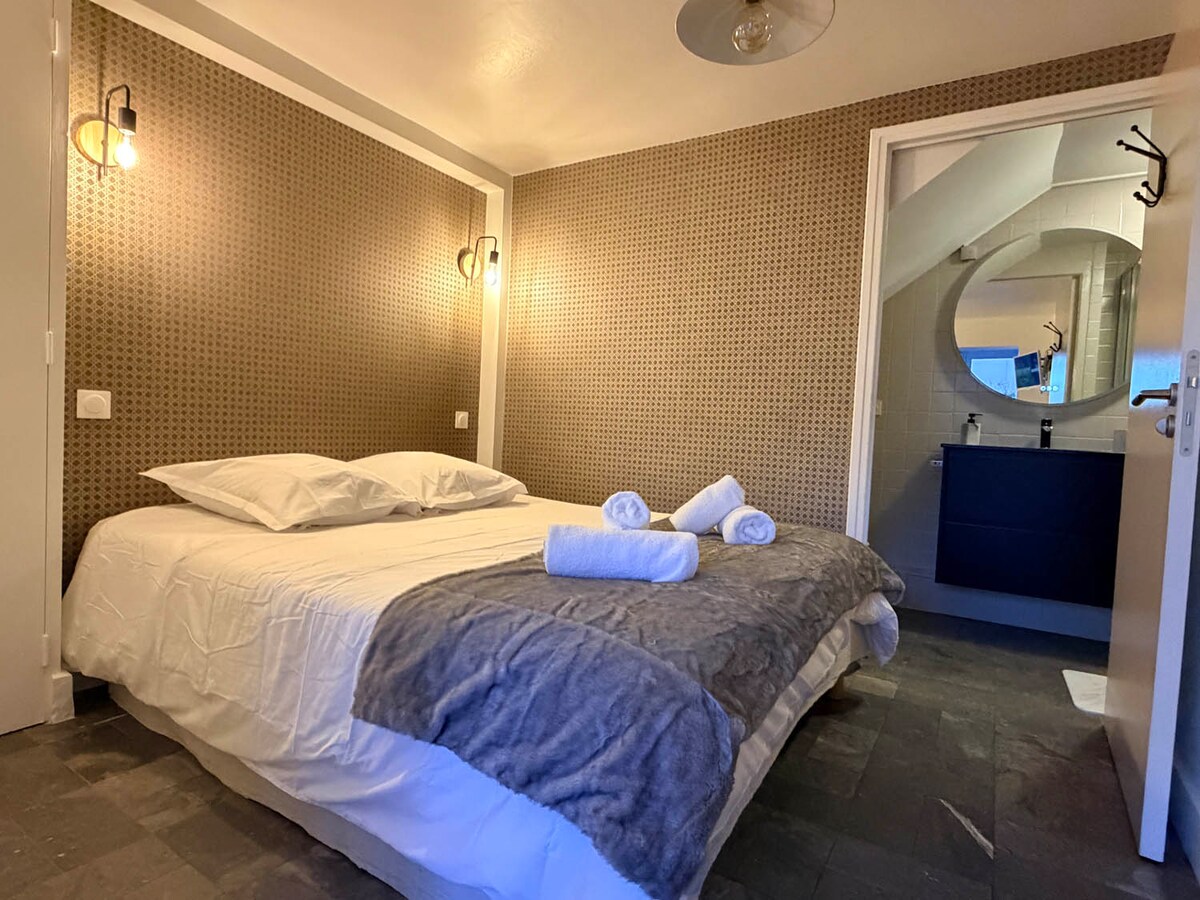 Nhà ở yên bình và trung tâm hoàn toàn mới. Căn hộ có thể đi đến 5 bậc, sân thượng hướng nam, 2 phòng bao gồm phòng khách - nhà bếp với ghế sofa có thể chuyển đổi, phòng thoải mái (giường cỡ king) với phòng tắm tích hợp, nhà vệ sinh riêng biệt. Sân thượng riêng có bàn ghế, 2 phòng tắm nắng, plancha điện. Vị trí rất tốt: cách bãi biển Donville les bains 350 m, cách ga tàu hỏa và trung tâm thành phố Granville 10 m đi bộ, cách vườn Dior 200 m.