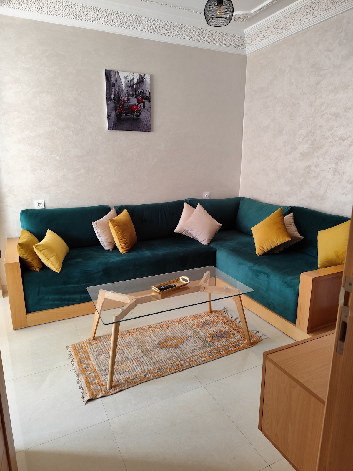 Cosy Apartment 10 Minutes from Marrakech Airport Located just 10 minutes from Marrakech Menara Airport, this stylish and cozy apartment offers the perfect blend of comfort and convenience. Nestled in a quiet neighborhood, it provides easy access to the city’s vibrant medina, cultural landmarks, and popular attractions. Whether you’re here for a quick stopover or an extended stay, this apartment is your ideal home base in Marrakech.