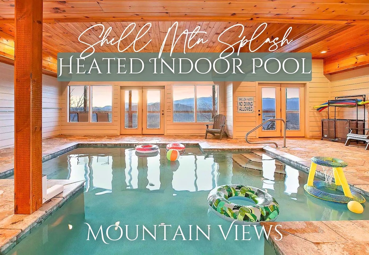 Explore Shell Mountain Splash, a 4-bedroom Sevierville retreat designed for extended family comfort. Boasting breathtaking mountain views, this haven features an indoor heated pool, hot tub, and 80's arcade, accommodating up to 12 guests. Each bedroom comes with a private bathroom. The gourmet kitchen, open lounge with a fireplace, and a spacious dining area add a touch of luxury. Enjoy the heated indoor pool or step onto the deck for relaxation in the hot tub with panoramic mountain views.
