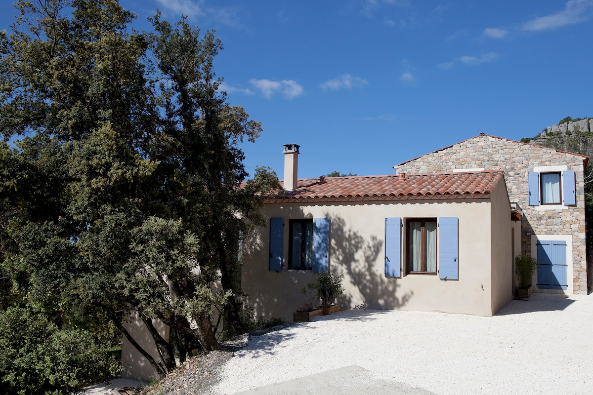 Notre logement avec cuisine équipée vous est réservé. Il surplomb le Pont du Diable, offre une vue exceptionnelle sur nos paysages authentiques. La terrasse et un espace détente vous aideront à suspendre le temps. Une belle salle de bain avec douche à l'italienne, et une chambre avec baie vitrée donnant sur une vue superbe. Le tout climatisé. Je suis producteur d'huile d'olive en Bio, je cultive et transforme mes olives en olivades originales. En savoir plus sur lalogeduloriot.