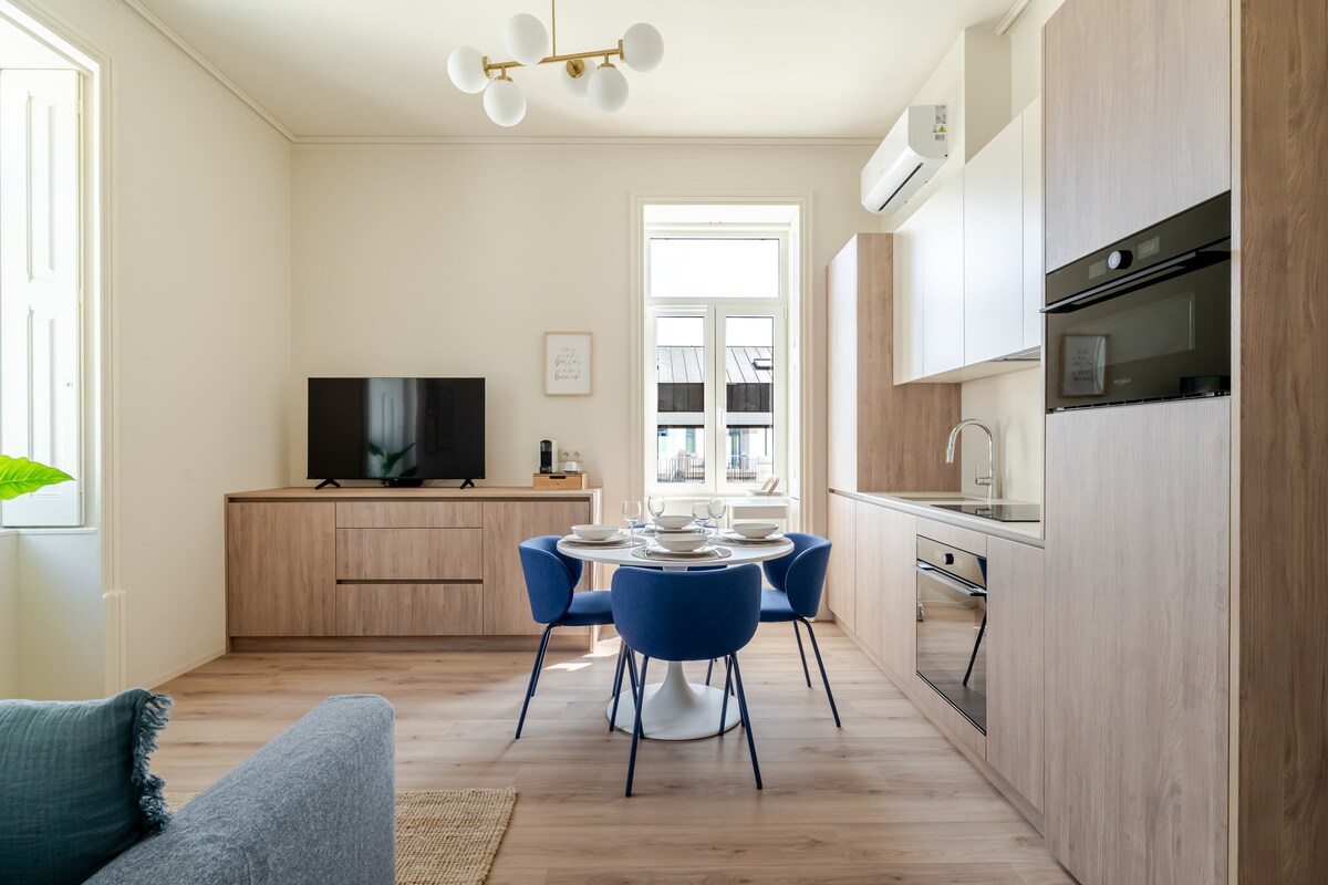 Nằm ở tầng 1, căn hộ này dành cho tối đa bốn khách có điều hòa không khí, máy giặt sấy, phòng thiền/phòng tập mini và ban công hướng ra phía trước. Phòng ngủ tầng dưới mở ra phòng khách thông qua một cánh cửa bỏ túi, trong khi phòng ngủ tầng trên có ban công riêng. Gần Rua de Santa Catarina và Chợ Bolhão. Đối với khách đi du lịch với trẻ nhỏ, có sẵn gói đồ cho em bé theo yêu cầu (25 EUR) và bao gồm giường cũi có ga trải giường, ghế ăn cho trẻ, bồn tắm, tiện nghi cho em bé và khăn tắm cho em bé.