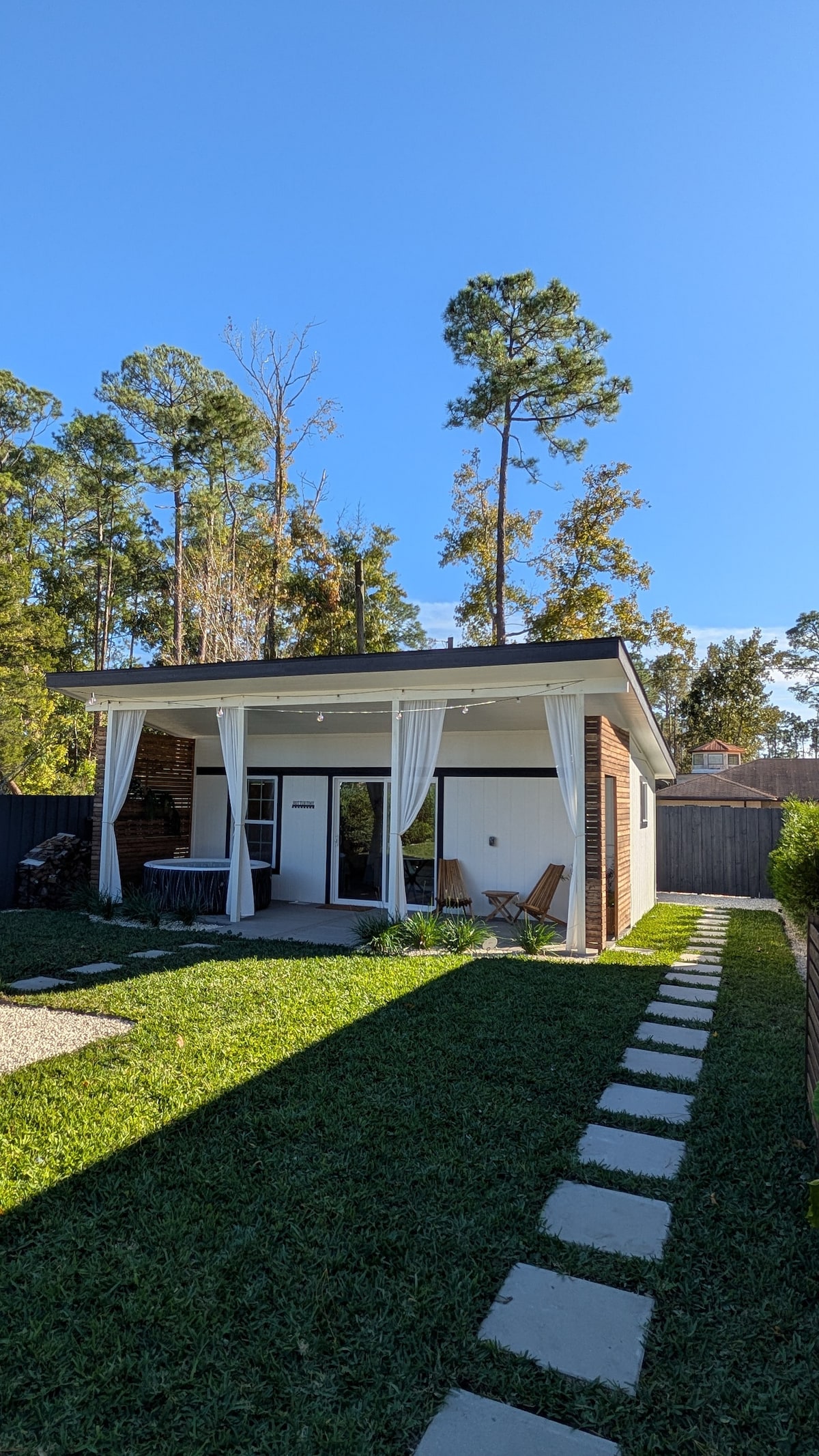Thuê nhà khách thân thiện với thú cưng này trong sân sau yên tĩnh được chăm sóc chu đáo của chúng tôi. Studio đi kèm với giường cỡ queen, ghế sofa, tủ quần áo, tủ lạnh mini, Keurig, lò vi sóng, bàn ghế. Tận hưởng DirecTV và bộ định tuyến WiFi chuyên dụng. Thưởng thức một tách cà phê yên bình hoặc cocktail buổi tối trên boong gỗ kèm theo. Thú cưng ngoan ngoãn được khuyến khích chạy tự do trong hàng rào đầy đủ trong sân. Phòng thí nghiệm màu đen của chúng tôi sẽ thích công ty! Đến TIAA Bank Field trong vòng chưa đầy 5 phút hoặc ra bãi biển trong khoảng 25 phút. Phải là 25 mới có thể đặt phòng