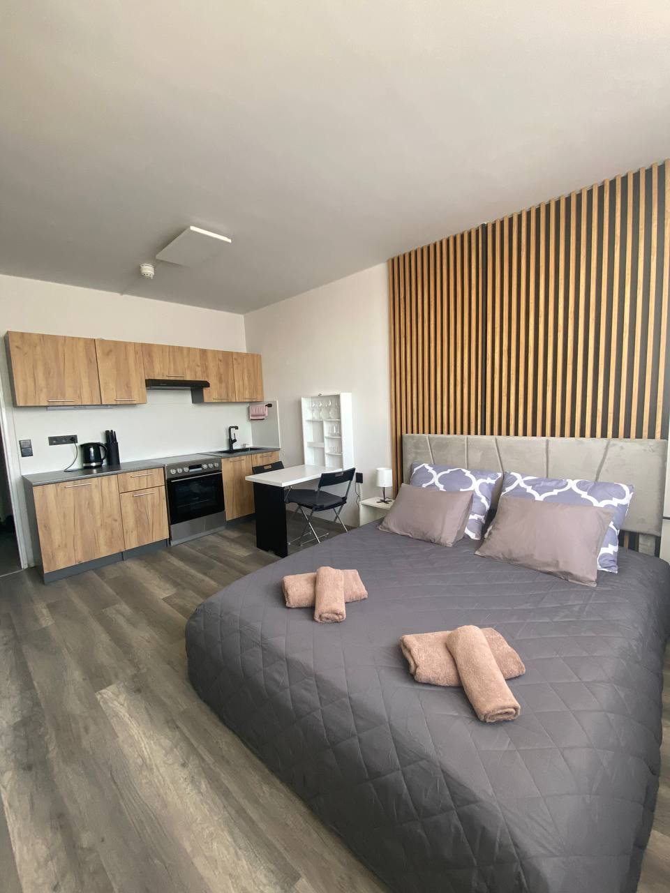 Thư giãn trong không gian thanh bình và phong cách này. Hãy là người đầu tiên ở trong căn hộ. Đây là một căn hộ đầy đủ tiện nghi trong một tòa nhà mới được hoàn thành gần đây. Những ngôi nhà thoải mái có wifi miễn phí và bãi đậu xe riêng. Căn hộ có bếp đầy đủ tiện nghi, tủ lạnh, bếp từ, lò nướng, ấm đun nước điện, phòng tắm riêng với bồn tắm, phòng ngủ và điều hòa không khí. 14 phút đến trung tâm bằng ô tô hoặc 30 phút bằng tàu điện ngầm (DEPO HOST, STRAЕNICKÁ) hoặc bằng xe điện.