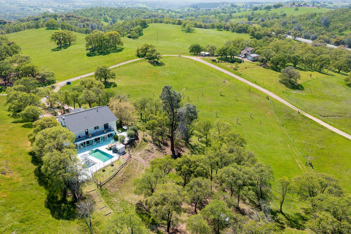Chào mừng bạn đến với trang trại lịch sử của chúng tôi ngay trung tâm Sutter Creek. Nằm trên một con phố yên tĩnh, ngôi nhà này đã được cải tạo hoàn toàn với các tiện nghi hiện đại và sự quyến rũ lịch sử, bao gồm một vòng quanh hiên trước với đu quay và ăn uống ngoài trời, sân hiên và một khu vực bãi cỏ rộng lớn để giải trí hoặc chỉ thư giãn. Tận hưởng Bồn tắm nước nóng, hố lửa, khám phá các khu vườn, đài phun nước và khu vực ngồi. Cách đường chính 1 dãy nhà, nơi bạn có thể đến nếm thử rượu vang, mua sắm và ăn uống.