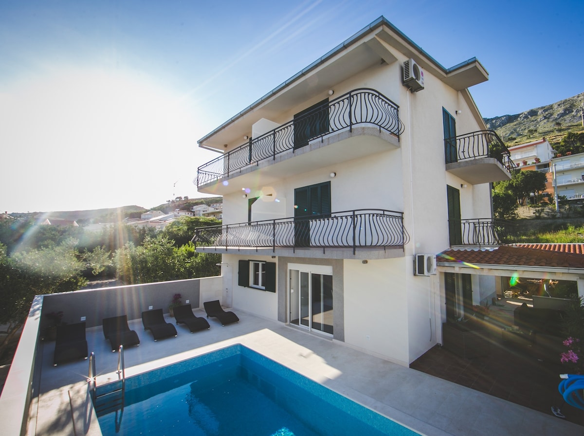 VILLA PARADISE nằm ở thị trấn ven biển Duće chỉ cách Omis 2 km. Biệt thự được trang bị hoàn hảo theo phong cách hiện đại và sang trọng chứa mọi thứ cần thiết cho cuộc sống hiện đại. Với tầm nhìn ra biển tuyệt vời từ hầu hết tất cả các phòng ngủ và khu vực sinh hoạt/ăn uống/hồ bơi, bạn được mời thư giãn trong khi ngắm hoàng hôn trên biển Adriatic. Do vị trí của biệt thự, bạn chỉ cách bãi biển đầy cát, quán bar, nhà hàng vài bước chân
