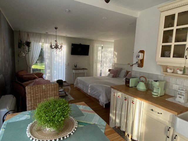 Một tổ ấm lãng mạn chỉ cách biển 300 m và cách 'SILT' ( Sòng bạc) 500m. 'De Dromerie' là một ốc đảo yên bình dọc theo các khu vườn Waranded. Nhà khách của chúng tôi là một studio được trang bị nội thất nông thôn, có bếp nhỏ riêng, bồn tắm cổ điển, vòi sen, thẩm mỹ viện, giường lớn và sân thượng riêng. nhìn ra vườn. Chúng tôi cung cấp giỏ đồ ăn sáng theo yêu cầu. Chúng tôi yêu nghệ thuật, trong vườn bạn sẽ tìm thấy hai yếu tố bê tông nghệ thuật đường phố và chúng tôi có một studio gốm nhỏ. Xe đạp miễn phí!