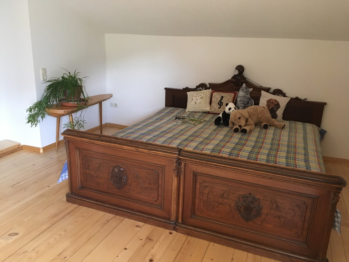 Wir bieten eine komplette Wohnung (115m²) im 1. OG im Herzen des Walgau's. Folgende Schlafmöglichkeiten sind verfügbar: - Schlafzimmer mit Doppelbett (180x200) - Schlafzimmer mit großem Familienbett (270x200) sowie einem Hochbett für Kind(er) (ca. 170x90) - Gästezimmer mit 2 Einzelbetten oder Doppelbett (2 mal 90x200) - Wohnzimmer mit ausziehbarer Couch für 2 Personen Die Unterkunft liegt in unmittelbarer Nähe zu: - Bäckereien - Supermarkt - Schwimmbad / Tennisplätze - Bahnhof
