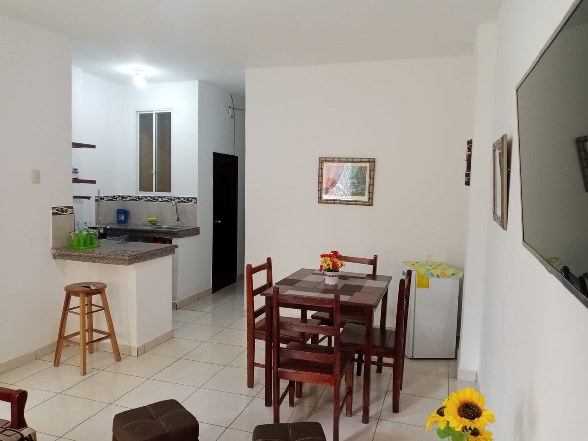 - 100% riêng tư - Sân trong nhà - 17 phút từ Lãnh sự quán Americano, 12 phút đến Aeropuerto, 7 phút đến Sanmarino - 1 giường Queen + 1 giường sofa - 2 TV thông minh và internet - Bếp nhỏ - Nhận phòng: 15h00 Trả phòng: 11h00 - Cédulas/hộ chiếu bắt buộc - Bãi đỗ xe riêng miễn phí ở Plaza Guayarte, trước căn hộ chung cư, có mái che. Thời gian: Sun a Juev: mở cửa LÚC 6 GIỜ SÁNG, đóng cửa LÚC 12 GIỜ SÁNG Vie y Sat: mở cửa LÚC 6 GIỜ SÁNG, đóng cửa LÚC 1 GIỜ SÁNG - Bãi đỗ xe không có người giám hộ: Đối diện với lối vào chính. (1 chỗ)