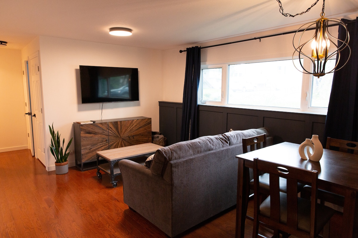 ▶︎ CĂN hộ 2 giường/1 phòng tắm được sửa sang lại phong cách ▶. Nằm trong khu phố Turnagain yên tĩnh/an toàn ▶ 5 phút từ sân bay ▶8 phút đi bộ đến Công viên Động đất lịch sử và tầm nhìn ngoạn mục từ Đường mòn ven biển ▶10 phút lái xe ở trung tâm thành phố ▶Máy giặt và máy sấy miễn phí tại chỗ ▶︎ Chỗ đỗ xe miễn phí ▶Nhà hàng và cửa hàng tạp hóa tuyệt vời gần đó ▶Nhà bếp đầy đủ đồ với tất cả các tiện nghi thiết yếu ▶︎Keurig Coffee + Trà các loại để bắt đầu cuộc phiêu lưu mỗi ngày ngay! ▶︎ Wifi nhanh rực rỡ và TV thông minh 4K 55" ▶︎2 Giường Queen siêu thoải mái chất lượng hàng đầu + Ghế sofa lớn