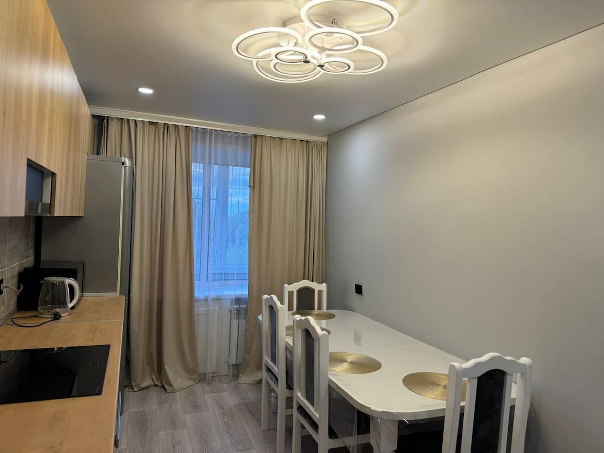Căn hộ đang trong tình trạng hoàn hảo. Sáng sủa, ấm áp và ấm cúng, có tất cả các tiện nghi cần thiết để có một thời gian lưu trú thoải mái. Luôn sạch hoàn hảo ga trải giường, khăn tắm, dép đi trong nhà. Tất cả các thiết bị gia dụng : TV 3D với bảng điều khiển Android-TV (YouTube, v.v.). Trong khu vực có khoảng cách đi bộ có quán cà phê Voyage 24 giờ, phòng ăn Golden Horde, cửa hàng, hiệu thuốc, điểm dừng, đối diện nhà MSC-2. Đối với khách đi công tác, chúng tôi cung cấp tất cả các tài liệu cần thiết cho chỗ ở.