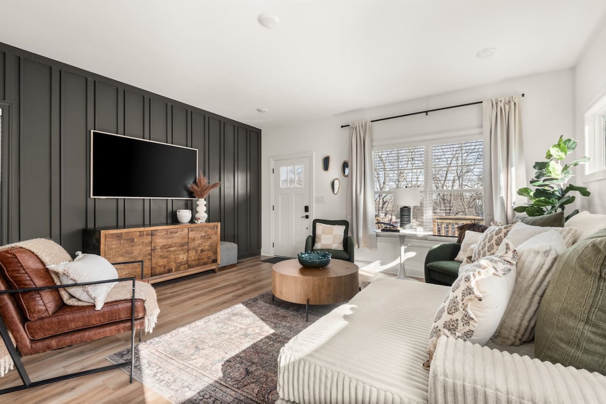 Chào mừng bạn đến với khu nghỉ dưỡng East Nashville hiện đại của chúng tôi! Thư giãn trong phòng xông hơi khô tích hợp hoặc tận hưởng sân sau rộng rãi với bếp nướng. Hoàn hảo cho gia đình và bạn bè, nhà của chúng tôi chỉ cách các nhà hàng, cửa hàng và điểm tham quan sôi động của trung tâm Nashville một quãng lái xe ngắn. Cho dù đó là một kỳ nghỉ cuối tuần hay thời gian lưu trú kéo dài, không gian đầy phong cách này là chỗ ở hoàn hảo của bạn. Xin lưu ý, bạn phải có biểu mẫu nhận phòng có xác minh danh tính trước khi đến. Đặt chỗ ở của bạn và tạo ra những kỷ niệm đáng nhớ tại Music City!