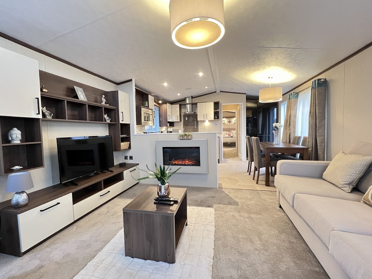 Dưới đây là không gian độc đáo của tôi. Ngôi nhà hiện đại và rất rộng rãi. Bàn ăn bằng đá cẩm thạch lớn ở ghế nhà bếp 6. TV cỡ King cũng ở trong khu vực bếp. Giường cỡ Super king trong phòng ngủ chính và giường cỡ king trong phòng ngủ đôi. Khu vực sinh hoạt rất thoải mái và rộng rãi. Bạn sẽ có quyền sử dụng hang động spa (ngoài nhà), nơi bạn có thể thư giãn và sử dụng bồn tắm nước nóng và phòng xông hơi khô, có một chiếc giường cỡ king và một cậu bé lười biếng để thư giãn.