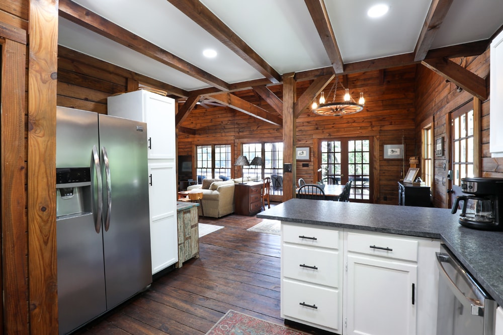 When high design meets authentic log cabin, you get the WOW that is Houndstooth Hideaway. StayDahlonega brings you this rescued log cabin which sits comfortably in the heart of wine country yet is only 12 minutes to downtown Dahlonega. You can feel the history in the walls; reclaimed materials at every turn, carefully curated details, and handsome logs assembled by our expert craftsman. Curl up with a great novel, explore the grounds, and a cozy night sky. This is Cabin Style at its finest.