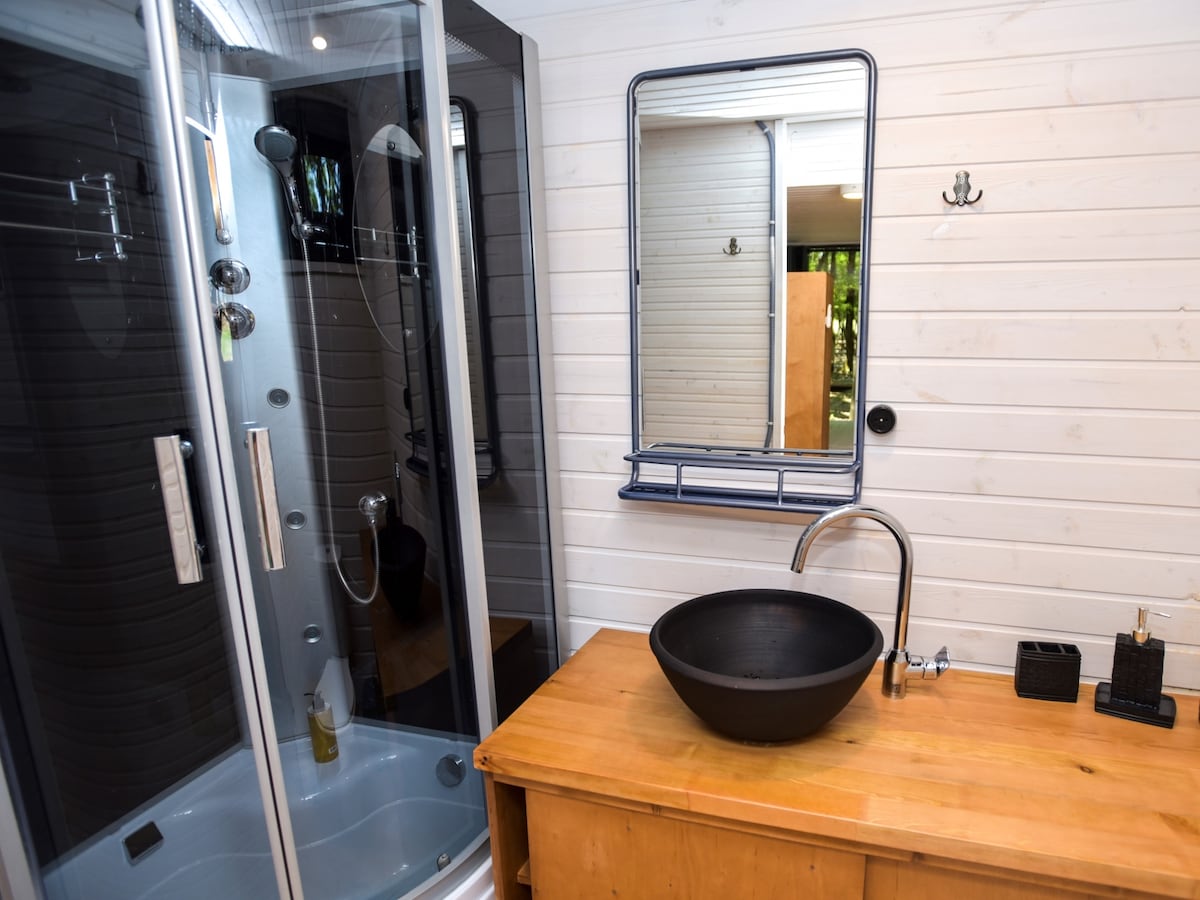 Phòng tắm trong rừng "thư giãn" Đây là một nơi độc đáo ngay bên cạnh Vilnius, nơi bạn có thể tận hưởng một công ty được yêu thích, giống như một trang trại chỉ dành cho hai người! Có những khung cảnh thiên nhiên tuyệt vời bên ngoài và bên ngoài cabin, bạn sẽ có thể lắng nghe tiếng chim hót trên sân thượng rộng rãi hoặc nhân viên pha chế vào cuối buổi tối và tận hưởng phòng xông hơi nóng hoặc bể sục Cuba.