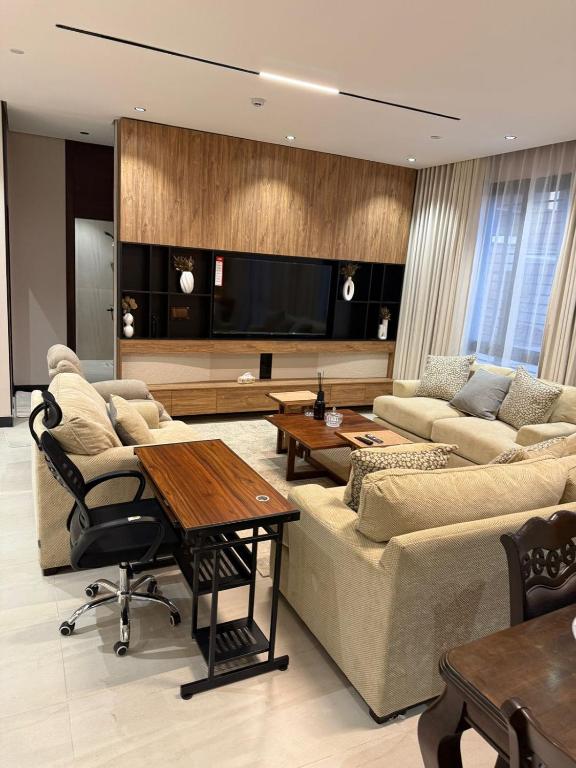 Tận hưởng sự thoải mái và yên tĩnh với gia đình bạn trong một nơi cư trú cao cấp tại một trong những khu phố hàng đầu của Riyadh. Nhà có giường theo phong cách khách sạn, bếp hiện đại và phòng khách ấm cúng. Khu phức hợp này có phòng tập thể dục và trung tâm chăm sóc sức khỏe cho nam và nữ, phòng trò chơi, chợ thông minh và quán cà phê có chỗ ngồi trong nhà và ngoài trời. Vị trí lý tưởng gần các sự kiện và dịch vụ lớn. Sân bay Riyadh: 17 phút Đại lộ Riyadh: 5 phút