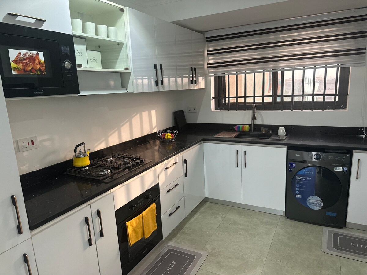 Chào mừng bạn đến với ngôi nhà của mình ở nơi xa! Căn hộ 2 phòng ngủ phong cách và thoải mái này nằm trong khu vực yên bình và phát triển nhanh của Tema Community 25 – hoàn hảo cho các gia đình, cặp đôi hoặc khách đi công tác. Không gian có hai phòng ngủ với giường ngủ ấm cúng, nhiều không gian tủ quần áo và nhiều ánh sáng tự nhiên Tận hưởng bếp đầy đủ tiện nghi với các thiết bị hiện đại, lý tưởng để chuẩn bị những bữa ăn yêu thích của bạn. Khu vực ăn uống mang đến một không gian ấm cúng để tận hưởng cùng nhau.