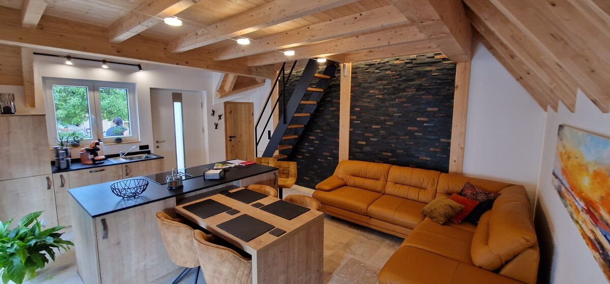 Chúng tôi yêu thương khôi phục trang trại cũ của chúng tôi vào năm 2016. Khí hậu trong nhà dễ chịu vì toàn bộ ngôi nhà được trang bị hệ thống sưởi treo tường và thạch cao đất sét. Tọa lạc trong một thị trấn nhỏ chỉ có một vài ngôi nhà và đặc biệt phù hợp với những người yêu thiên nhiên và những người tìm kiếm sự yên bình và yên tĩnh. Trẻ em cũng sẽ nhận được giá trị tiền của chúng. Điện thoại, truyền hình vệ tinh và Wi-Fi có sẵn, điều này cũng làm cho chỗ ở của chúng tôi trở nên lý tưởng cho văn phòng tại nhà với gia đình. Mua sắm gần nhất cách đó 4 km.