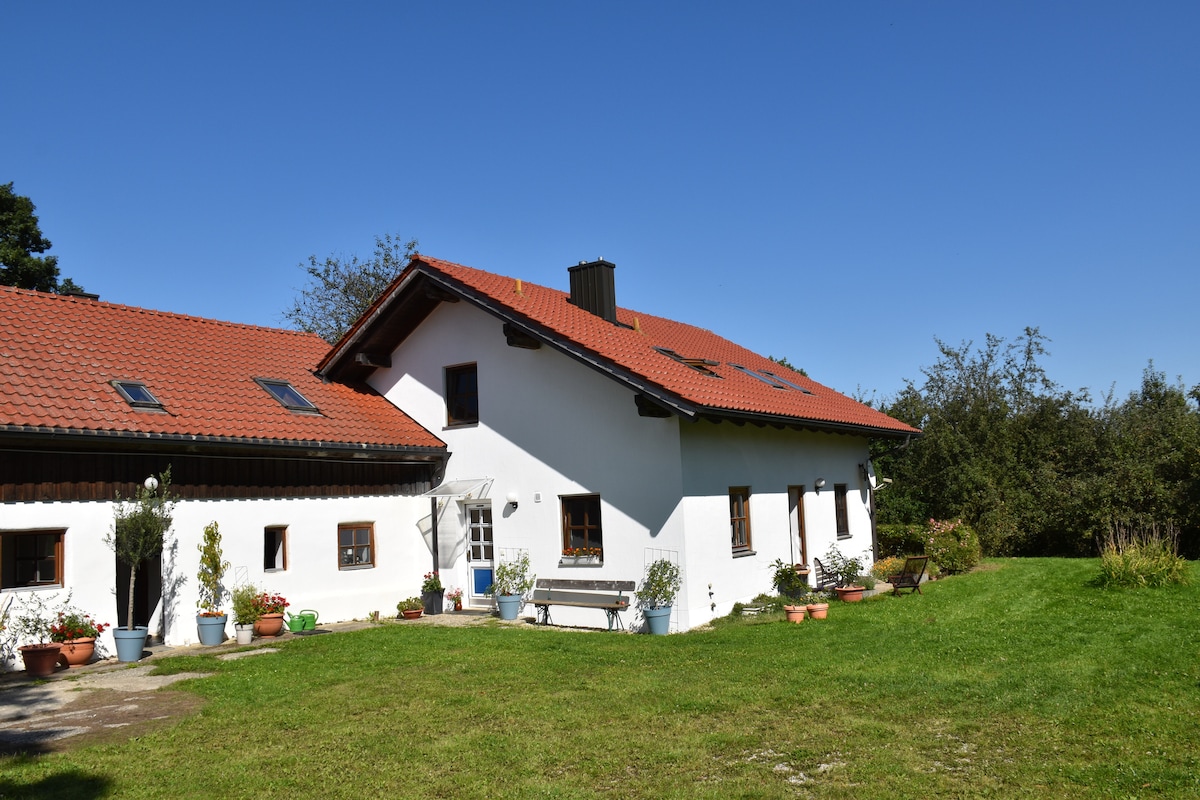 Hab Spaß mit der ganzen Familie in dieser stilvollen Unterkunft. Natur pur am Dreiseithof ganz aus Holz mit Pferden, Hühnern, und ganz viel Platz für eure Kinder. Direkt vom Anwesen gehts auf die zahlreichen Wanderwege des Schellenberges. Simbach am Inn / Braunau mit allen Geschäften sind 8 Minuten mit dem Auto entfernt. Das Rottaler Bäderdreieck ist in unmittelbarer Umgebung, Burghausen, Passau, Salzburg und München unter einer Stunde erreichbar.