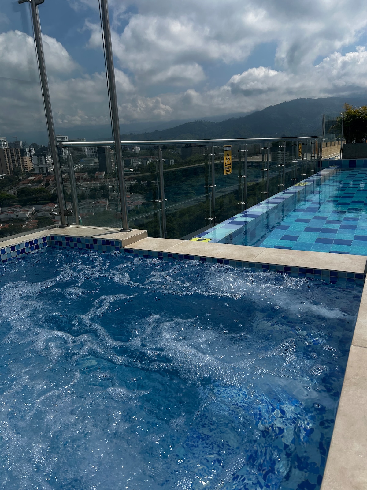 Hermoso y tranquilo apartamento ubicado en el corazón de Armenia pensado en tu comodidad ya sea que nos visites por trabajo o por vacaciones. Aquí podrás disfrutar de espectaculares vistas y lindas zonas comunes, piscina, sauna, turco y jacuzzi. También un gimnasio y cancha de basquetbol. Somos la mejor opción mientras visitas el Quindio y haremos de tus días una gran experiencia. Nos encuentramos a minutos de los mejores centros comerciales, clínicas y universidades de la ciudad.