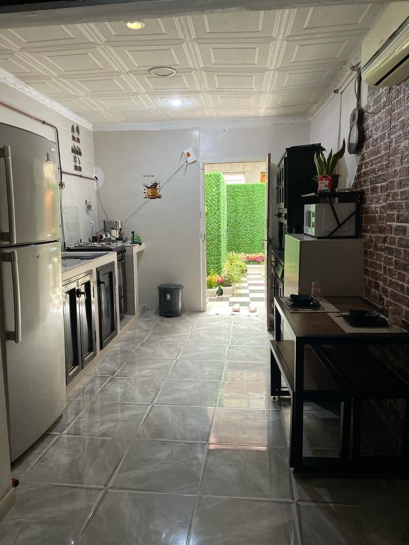 Au Rez de chaussée ; contient un grand salon ouvert avec une belle et vaste cuisine bien équipée et aussi menu de sa propre salle de bain et toilettes et contient aussi une chambre équipée aussi de sa propre douche et toilettes ce qui nous fait un total de 2 Salle de bain et 2 toilette dans cette chaleureux appartement À 7 minutes de marche du centre ville et de ain fawara pré de l arrêt de tramway