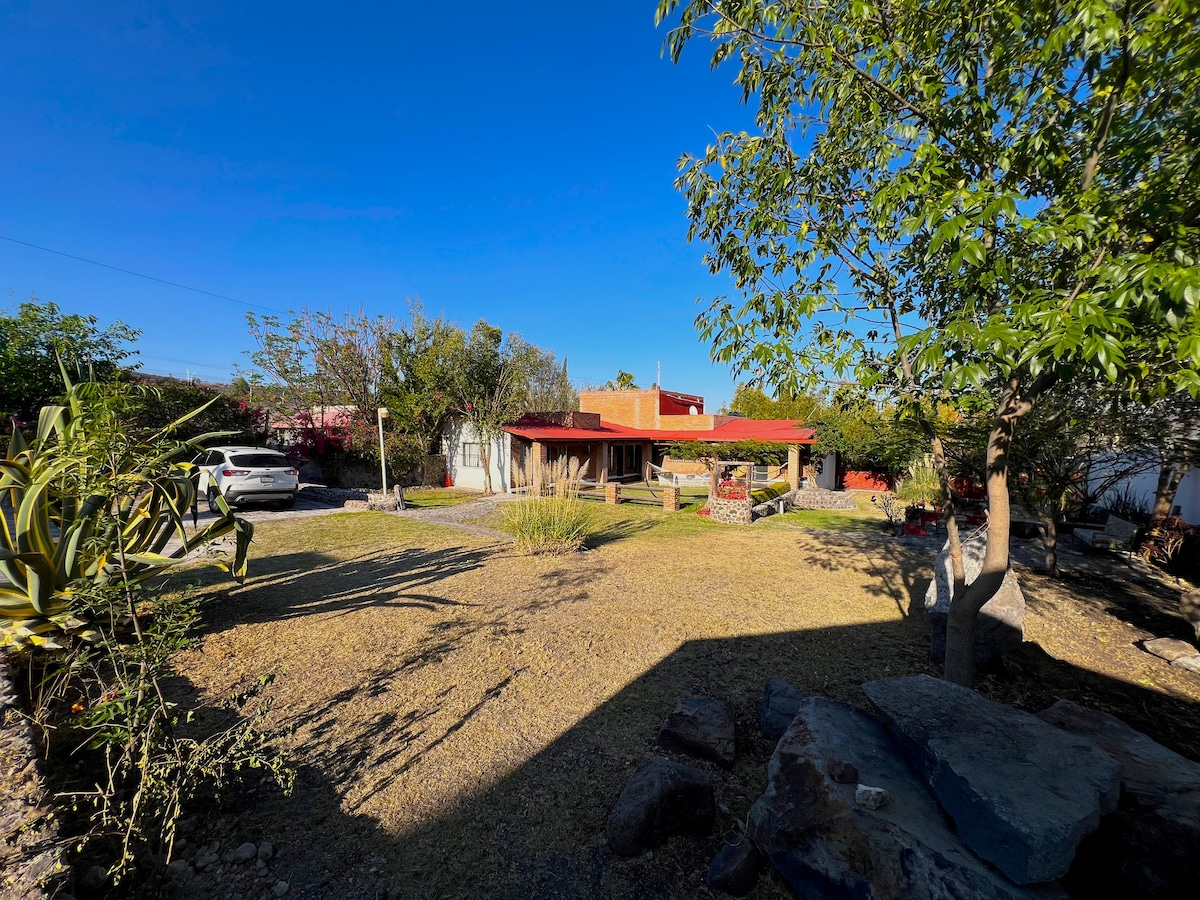 Desconecta de tus preocupaciones y escápate a la tranquilidad de nuestra casa en Querétaro. A solo 23 minutos del centro histórico, esta casa es el refugio perfecto para desconectarte del ajetreo diario. Con casi 1,000 m2 de jardín, amplios espacios, techos altos y un ambiente sereno, aquí encontrarás el equilibrio entre comodidad y naturaleza. Ya sea que busques unos días de paz o un punto estratégico para explorar la región, esta casa es la elección perfecta.