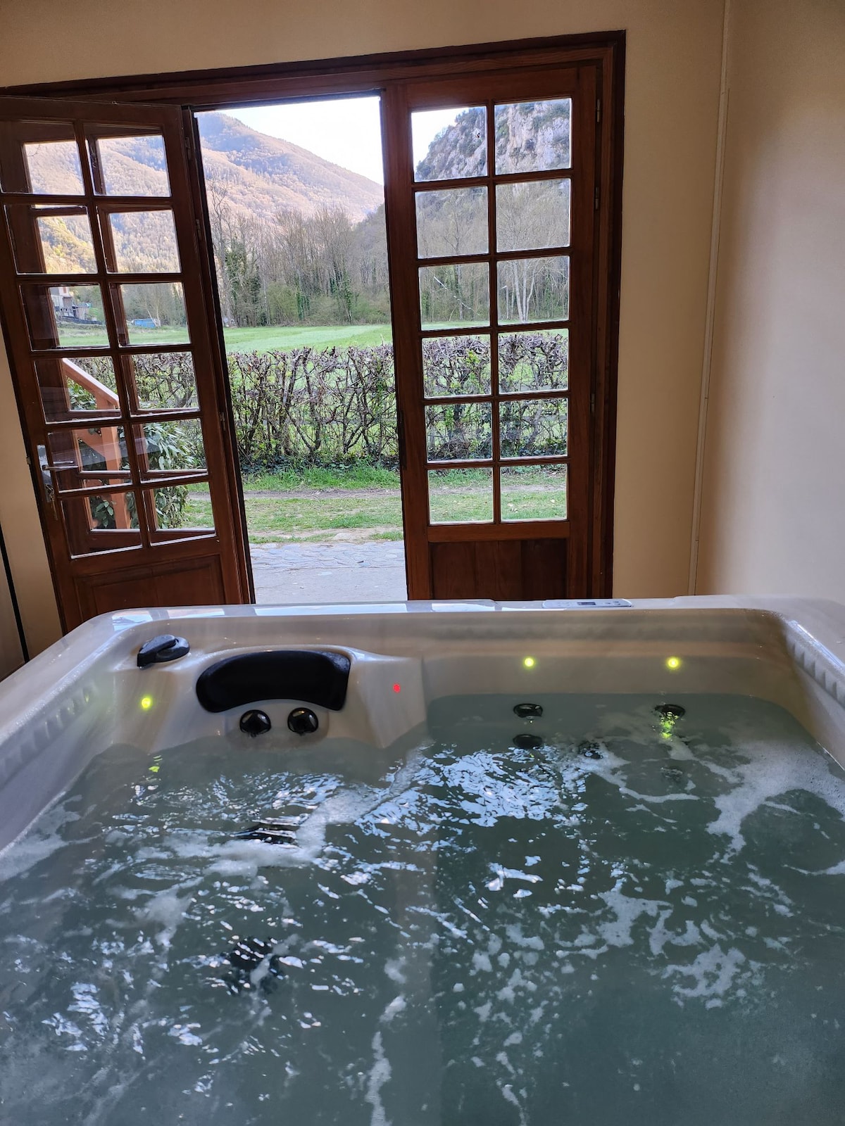 Ngôi nhà này có phong cách độc đáo kiên quyết. Hãy đến và khám phá ngôi nhà nghỉ thôn dã có điều hòa không khí không điển hình này, với phòng ngủ trong cabin, lưới catamaran, vòi sen trị liệu bằng ánh sáng, bồn tắm nước nóng ngoài trời và tầm nhìn toàn cảnh chuỗi Pyrenees. Nằm ở ngã tư của thung lũng, bạn sẽ tập luyện tất cả các môn thể thao trên núi. Nhiều địa điểm thời trung cổ, thời tiền sử và văn hóa luôn sẵn có cho bạn.