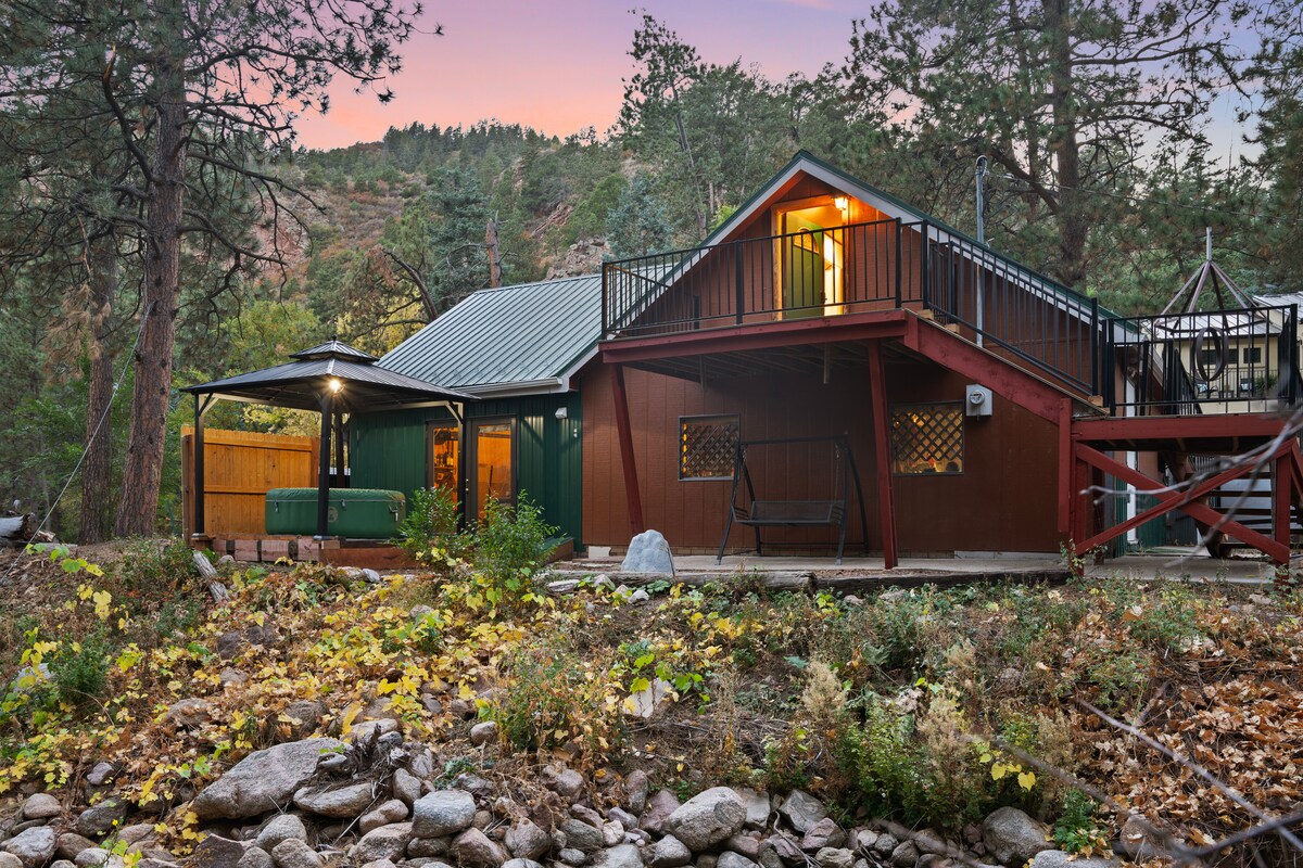 Located beside a babbling creek, our 2-bed, 2.5-bath log cabin offers a unique blend of rustic charm and modern comfort. Whether you're an avid hiker or seeking a tranquil getaway, our cabin's allure lies in its intimate connection with nature. Immerse yourself in the soothing sounds of the river, explore nearby trails and unwind on the creekside deck surrounded by the forest. Warm up by the wood-burning stove in winter. Experience the magic of Cheyenne Canyon-book for an unforgettable stay!