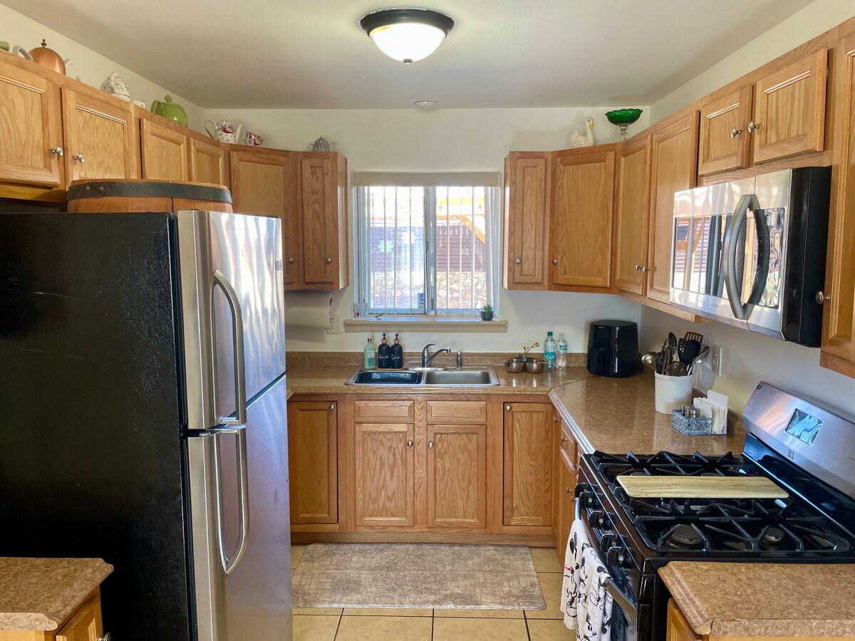 Tổng cộng ba giường và hai phòng tắm đầy đủ, có rất nhiều không gian để tận hưởng thời gian của bạn và thư giãn. Cải tạo trang nhã, hoàn chỉnh với các tiện nghi hiện đại. Thư giãn trong phòng tắm nắng rộng rãi được bao quanh bởi cây cối tươi tốt và sôi động. Tận hưởng sân sau với tầm nhìn ra núi, tham quan động vật hoang dã và không bị làm phiền từ khu phố xung quanh. Chỉ cách sân bay 15 phút, cách Fort Bliss 8 phút và 10 phút đến những con đường núi đẹp như tranh vẽ. Phù hợp với mọi đối tượng du khách!