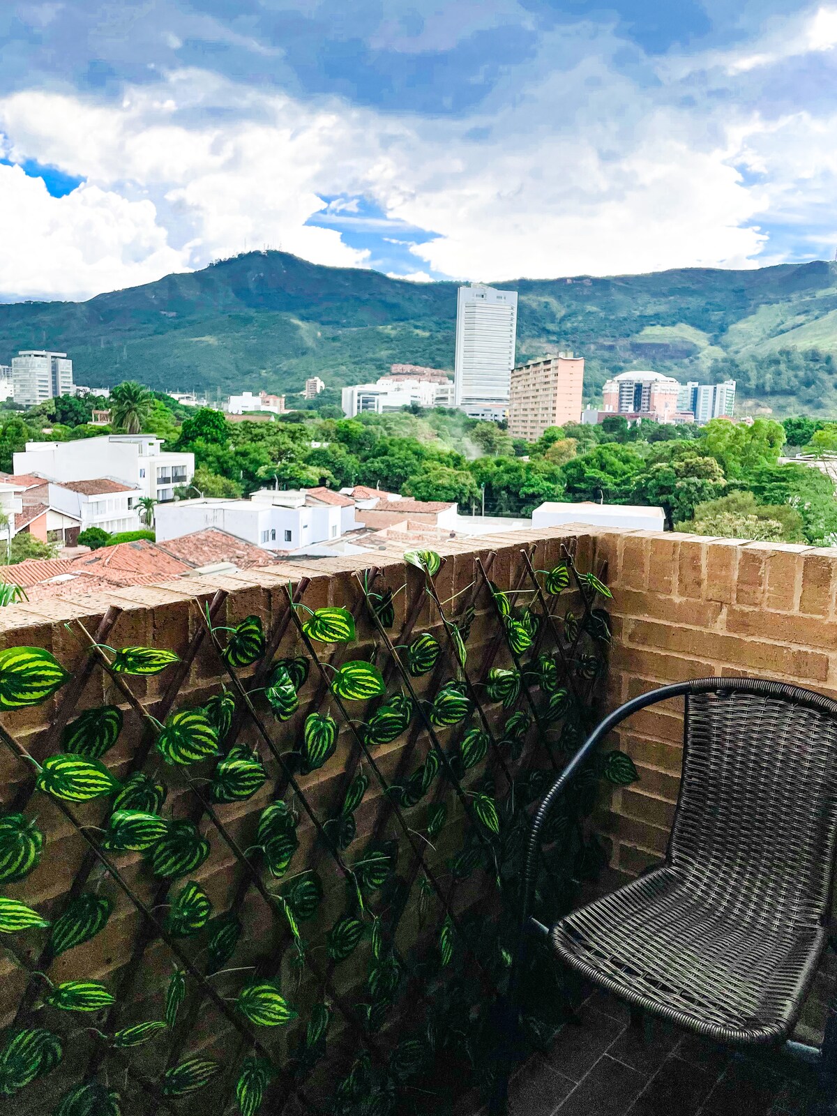 Edificio con diseño moderno para disfrutar de las mejores vistas de Cali, tiene una ubicación estratégica en el norte de la ciudad: ¡será muy fácil planear tu visita! Cerca al aeropuerto, centros comerciales y zona gastronómica. Apartamento con amplio balcón privado con hamaca y sofá, cama queen, escritorio, cocina totalmente dotada, lavadora y baño. Terraza con vista 360 sobre la ciudad de Cali te permitirá gozar de la brisa y los atardeceres caleños. Cuenta con ducha al aire libre y BBQ.