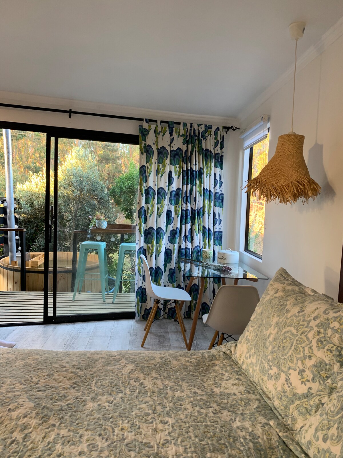 Minutes from the beaches of Quintay & Tunquén, 1.5 hour drive from Santiago, lies this rare find that is perfect for couples looking to relax & have fun. Your reservation includes the private guesthouse, heated outdoor hot tub, bbq area, parking, and own entrance. It's the perfect place to recharge, celebrate a special occasion, enjoy nature, relax, and explore ! The guesthouse includes over 60 quality modern amenities, sleeps 2, is fully equipped, & is clean & bright with a charming aesthetic.