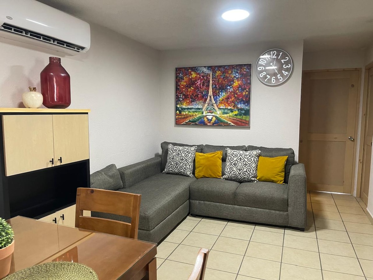 Encantador departamento, con una decoración cálida que te hará sentir como en casa, este edificio es totalmente nuevo. El departamento se encuentra a 15 minutos de la playa en auto y a 15 minutos del centro, caminando podrás encontrar tiendas de autoservicio y una pequeña y agradable cafetería con un jardín precioso para relajarte.