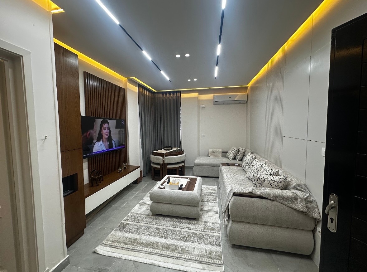 New apartment & new furniture, closest living area by the new Capital, Relax with the whole family at this peaceful place to stay. near by all kind of facilities 2min walk to (B12 services)/10min walk to (all season park, Carrefour, Craft zone). private and open view, surrounded by large green area , modern design furniture Mostly from Ikea- 56’ TV, 2 sofas , extendable dining table with 4 chairs, Bedroom- 2X2.1 large bed and wardrobe