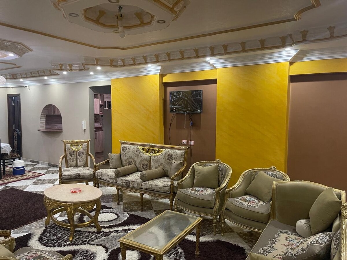 Modern and cozy apartment near the Pyramids with strong water pressure, hot water, and fast WiFi. Local Arab guests must provide valid ID and marriage proof (“Arousi” or “Arefi”) at check-in. Foreign couples do not need to provide marriage documents. Please respect these rules for a smooth stay. Thank you, looking forward to hosting you!