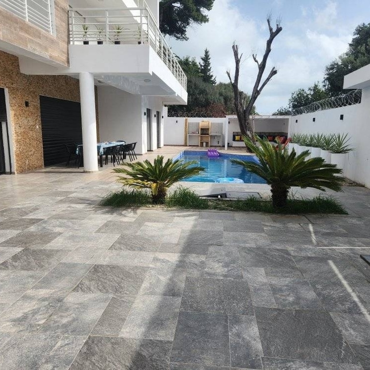 Situé en plein cœur de Annaba, offrant une vue panoramique imprenable sur la mer à 180°, sans aucun vis-à-vis. Avec plus de 200 m² habitables et une spectaculaire terrasse de 300 m², ce logement haut de gamme séduit par ses volumes généreux et ses prestations premium. Profitez d’une piscine privée de 13 × 4 m d’un espace détente avec transats, ainsi que d’un salon et d’une salle à manger de près de 80 m², élégamment aménagés avec deux canapés et et de 2 chambres et salle de bain moderne.