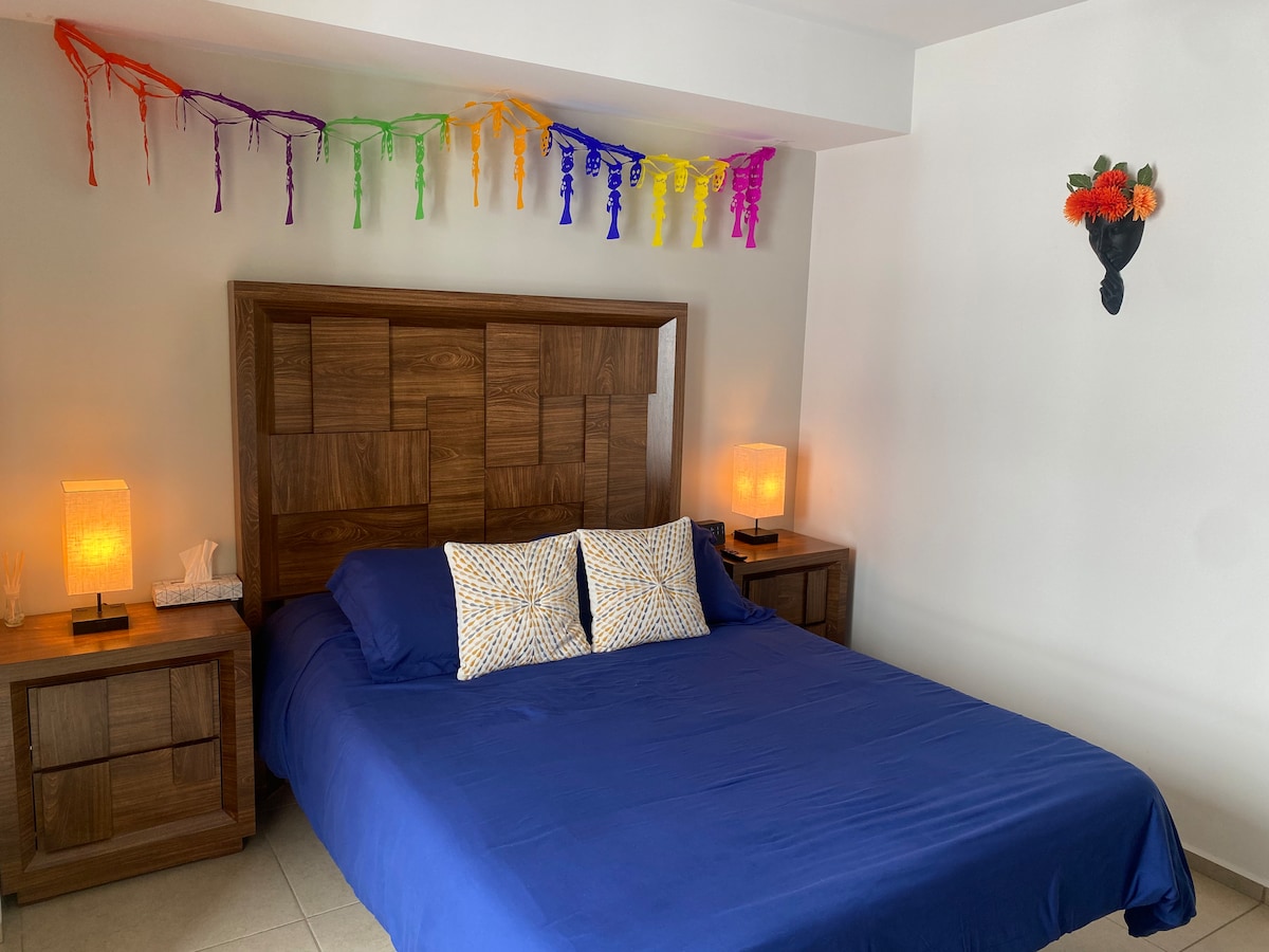 Bonito departamento en el centro de la ciudad de Zapopan, está en el piso 14 y podrás ver gran parte de la ciudad metropolitana de Guadalajara, a solo 5 minutos caminando de la estación Mercado del mar del tren ligero y 11 minutos caminando del auditorio Telmex, con amenidades para que disfrutes en familia. Cuenta con dos recámaras con cama matrimonial y en la sala con un sofá cama.