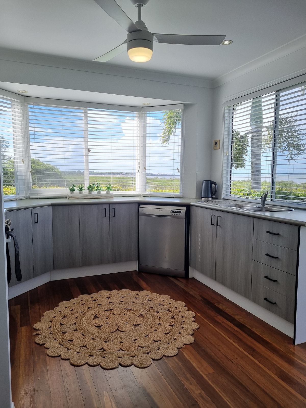 Palm Corner is a perfect getaway in the quiet suburbs of beautiful Hervey Bay. Friendly hosts. Continental breakfast. Tranquil balcony outside your room, comfortable queen size bed. Off street parking. Walk or cycle the old Rail Corridor. Ten minute - walk to the hospital and other medical facilities. Perfect for professionals or couples. Five-minute drive into town, ten minutes to beach. Bakery, butcher, and Corner Store-walking distance. Welcome to our Corner of the Bay.