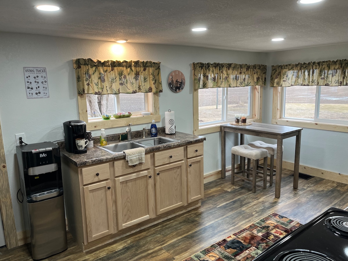 15 phút.-Iowa City, 5 phút - Riverside Casino và 35 phút - Sân bay Eastern Iowa, Cedar Rapids, IA. Giường thoải mái, phòng khách có ghế sofa kéo ra thành giường queen giấu, diện tích 32 mẫu Anh, cưỡi ngựa (phụ phí)*, hoạt động giải trí mùa đông và ao câu cá. 2 khách đầu tiên trả giá cơ sở, sau đó khách từ thứ 3 đến thứ 10 trả thêm 30,00 MỖI khách. Không TIỆC TÙNG trong trang trại của chúng tôi. Chúng tôi sống tại chỗ ở trong một ngôi nhà riêng biệt. Cho phép mang theo chó (phải nhốt trong chuồng khi bạn rời khỏi chỗ ở). Chúng tôi có lò nướng và dụng cụ nấu ăn trong bếp nhỏ. *Liên hệ để biết chi tiết.