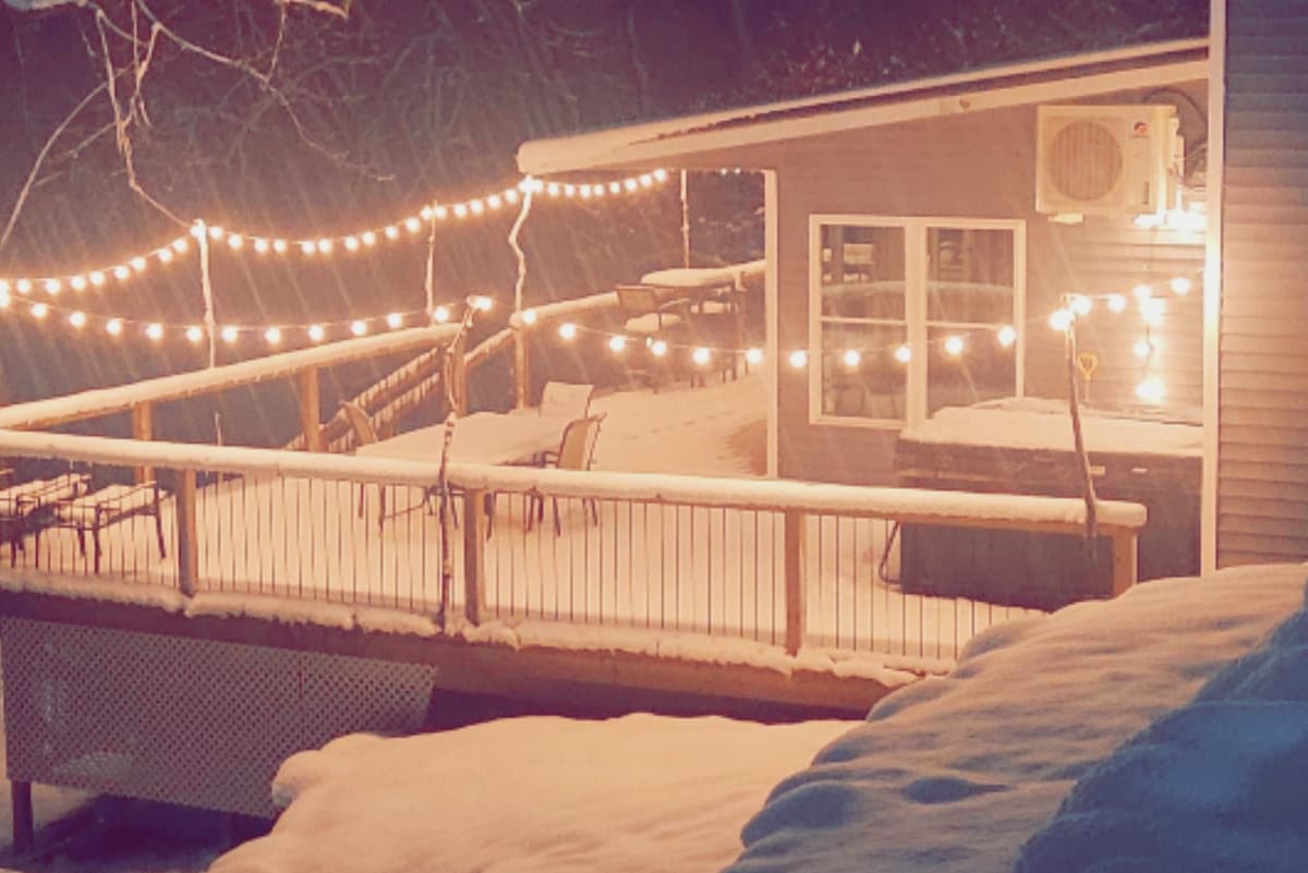 BỒN TẮM NƯỚC NÓNG 7 NGƯỜI, GAMEROOM, 12 THUYỀN KAYAK ĐƯỢC CUNG CẤP MIỄN PHÍ. Không có hàng xóm gần để lo lắng về tiếng ồn hoặc sự riêng tư. Quang cảnh sông tuyệt đẹp!! Bald Eagles thường được phát hiện dọc theo sông. Thư giãn quanh đống lửa trại hoặc trong bồn tắm nước nóng! Nằm cách Middlebury và Elkhart 10 phút và chỉ cách Shipshewana 18 phút! Notre Dame cũng chỉ cách đó 28 phút lái xe. Rất nhiều nhà hàng trong vòng 5 đến 10 phút. Cửa dấu gạch ngang hoặc UberEATS giao hàng đến địa điểm này.