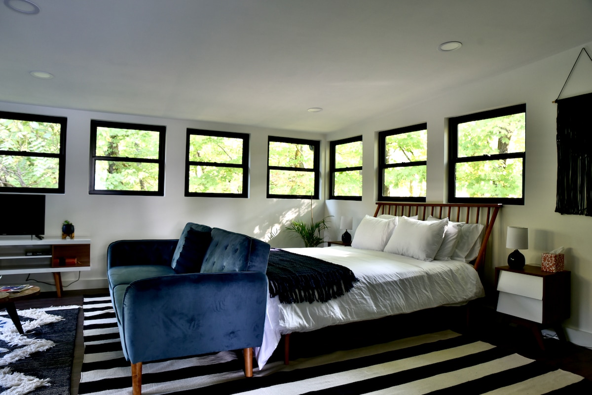 Intentionally designed to feel comfortable, calm, and easy to settle in. At ~400 sq ft with a slanted ceiling, it's ideal for solo travelers or couples. Guests describe the studio as cozy, spotless, and surprisingly well-equipped — with everything needed for a comfortable stay. Minutes from IU, downtown, dining, parks, and Kroger, you’re close to everything without the hassle. Please inquire about discounted rates for extended bookings.