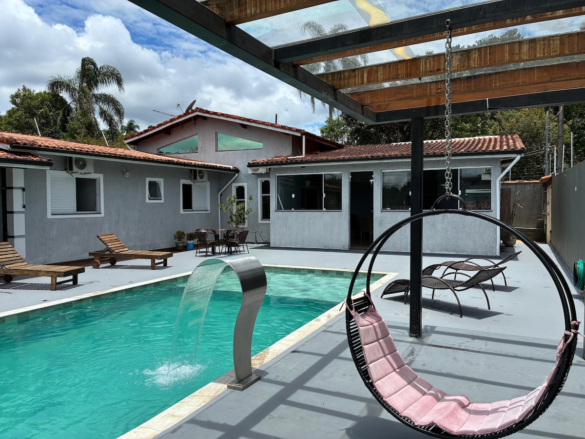 Chỉ cách SP 40 phút, Rancho Caraíbas là một nơi nghỉ ngơi mộc mạc và thân thiện giữa thiên nhiên. Hồ bơi, khu vực ẩm thực đầy đủ, Wi-Fi và không gian cho tối đa 20 người. Lý tưởng để nghỉ ngơi, giải trí và thời gian vui vẻ với những người bạn yêu thương. Nhà ở tầng trệt Hồ bơi lớn, khu vực dành cho người sành ăn được trang bị, tiệc nướng ngoài trời, lò nướng pizza và bếp củi, bếp gas, tủ lạnh, tủ đông. Chúng tôi có 2 phòng suite với giường đôi, cộng với 3 phòng ngủ với treliches, (chúng tôi có thể chứa 25 người trên giường).