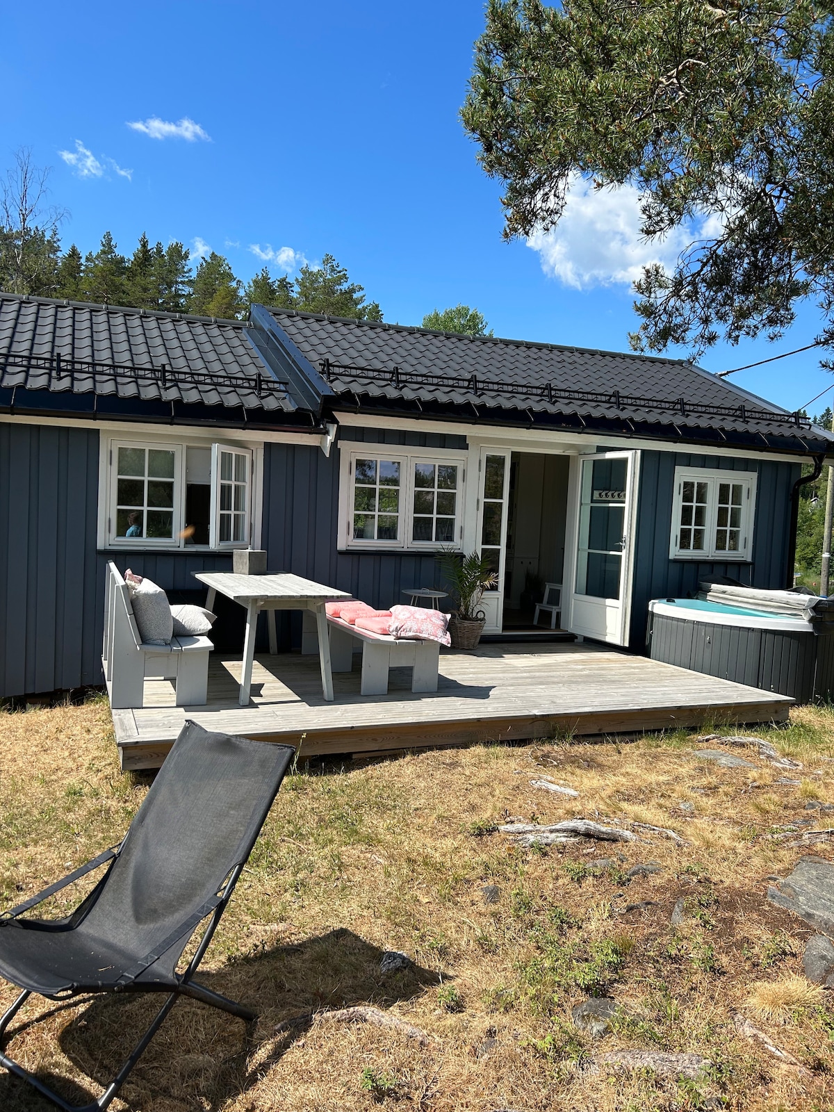 This newly renovated cabin is located beside a large lake in a protected nature reserve, just 30 min from Oslo and 40 min from the airport. Enjoy tranquility, wildlife, and outdoor activities. The cabin has two bedrooms plus a bedroom in the annex, modern amenities, full bathroom with incineration toilet, large balcony, garden, firepit, and outdoor shower. Perfect for guests seeking peace, nature, and fresh air, but with the comfort of a modern home.