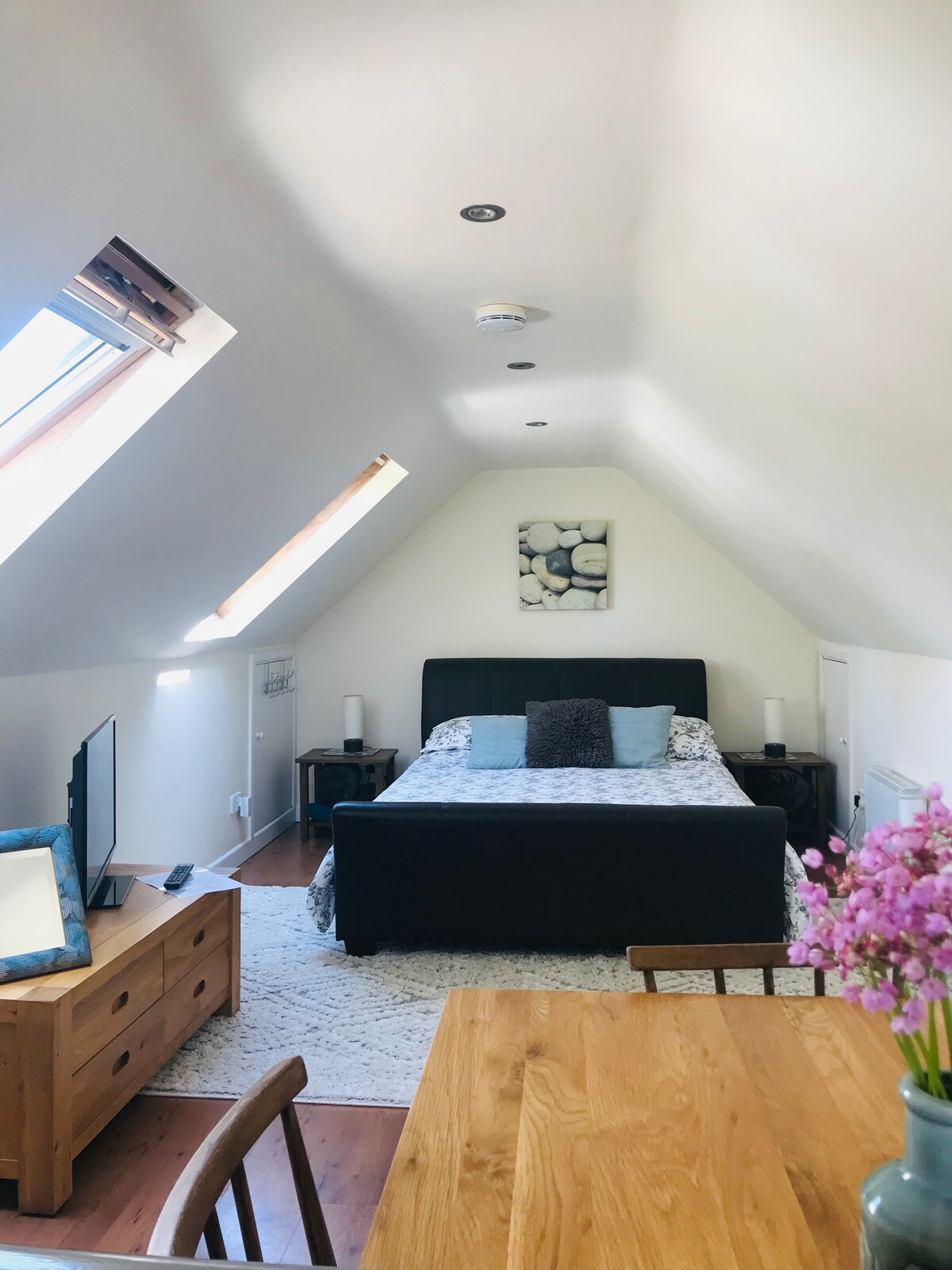 A stylish annex in a peaceful area of Penryn, with excellent transport links to Falmouth and the rest of Cornwall. Just a short walk from the town centre and university campus, it’s ideal for solo travelers, couples exploring Cornwall or visiting academics and students. This beautifully designed, architecturally unique space is filled with natural light. Recently redecorated and fully equipped, it offers everything needed for a comfortable stay. A calm and inspiring space to relax and unwind.