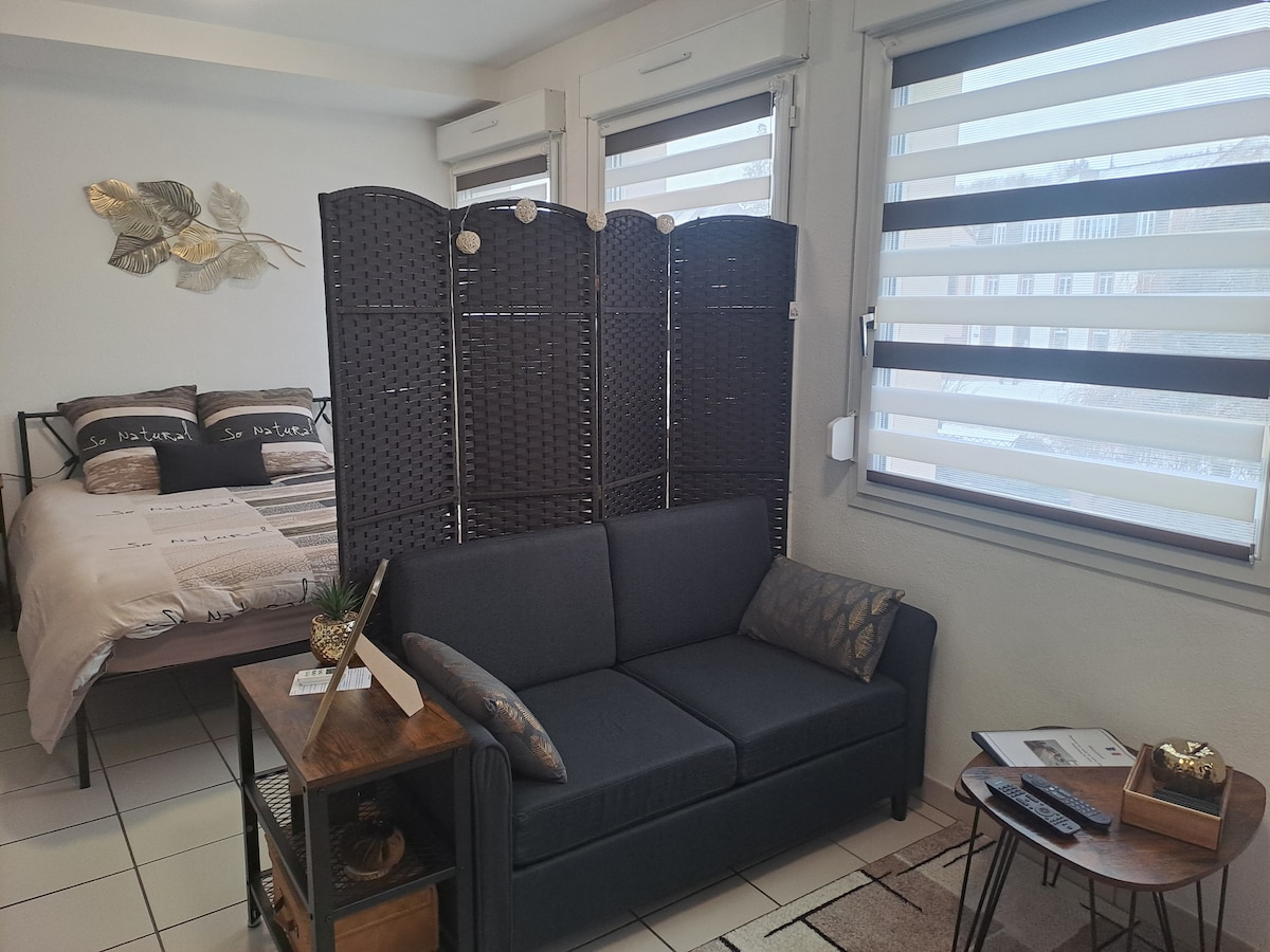 Chào mừng bạn đến với căn phòng 2 quyến rũ này, ấm cúng, yên tĩnh và được trang bị hoàn hảo, nằm ở vị trí lý tưởng ngay trung tâm Val de Moder. Khách sẽ được đỗ xe miễn phí trong khu vực lân cận và dễ dàng sử dụng nhiều tiện nghi: siêu thị, cửa hàng, nhà hàng... 🚗 Chỉ cách Cung điện Hoàng gia 10 phút, cách Haguenau 20 phút và Strasbourg 30 phút, chỗ ở này lý tưởng cho khách du lịch hoặc khách chuyên nghiệp.