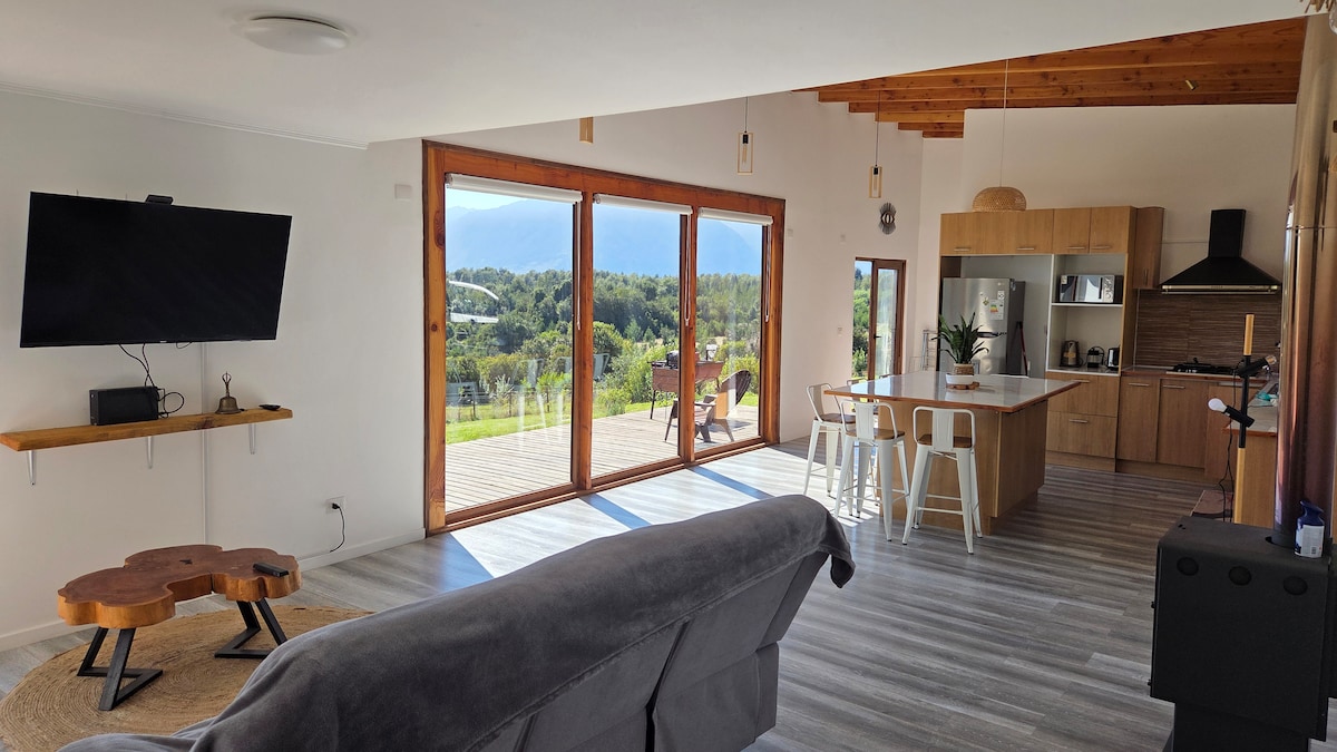 “Nature retreat in southern Chile, perfect for families and friends. Views of Lake Llanquihue and Osorno and Calbuco volcanoes in a peaceful setting. Located 20 km from Puerto Varas on Route 225 toward Volcán Osorno and Saltos del Petrohué. Access to Pescado River and lake beach. Home for 8, spacious and bright, with private hot tub for relaxing.”
