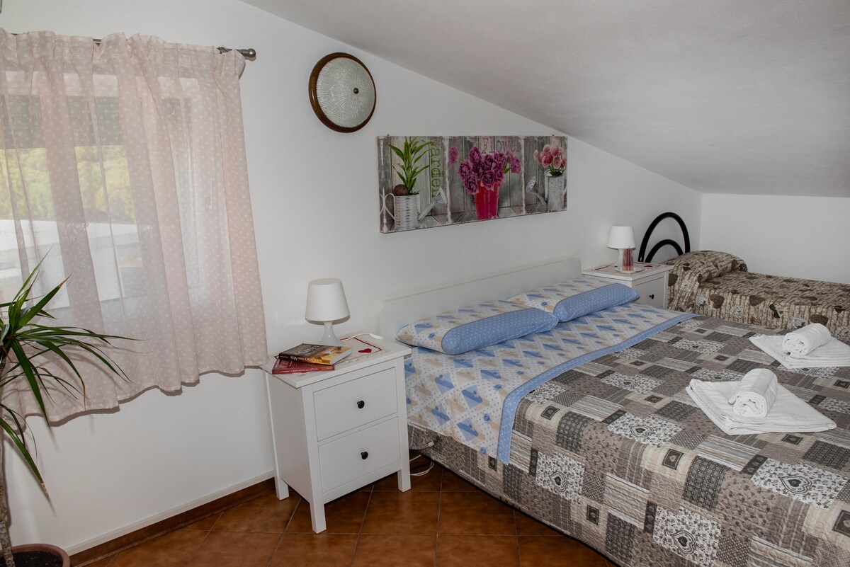 Questo appartamento mansardato è adatto per 2 o 3 persone. Si trova al secondo piano, offre un posto auto coperto all'interno della proprietà ed a pochi passi dal mare e dalla vicina zona pedonale centrale dove è possibile trovare ristoranti e negozi di ogni genere. La fermata del Bus, a pochi metri, permette di raggiungere il vicino centro commerciale in dieci minuti mentre un negozio di alimentari e un negozio per noleggiare biciclette è sotto casa.