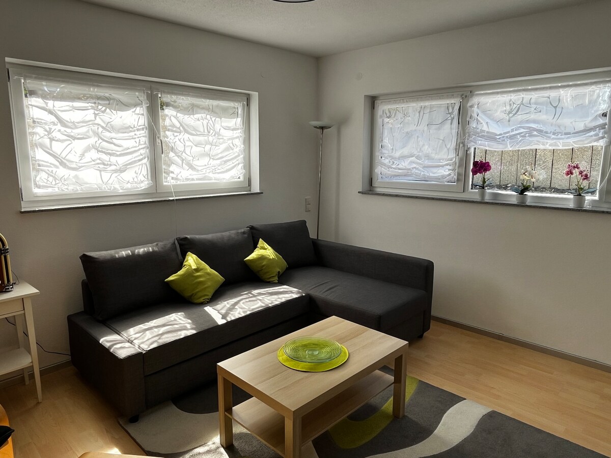 Căn hộ tầng hầm hiện đại ấm cúng và được trang bị đầy đủ tiện nghi ở Warthausen với sân thượng riêng ở một vị trí tuyệt vời. Một căn hộ 1 phòng mới được trang bị nội thất, 50 m2 với bếp nhỏ, khu vực ăn uống, khu vực sinh hoạt có giường sofa, giường đôi và không gian làm việc ; hành lang có tủ quần áo và phòng tắm có vòi sen. Chúng tôi mới được trang bị sân thượng nhìn ra vùng nông thôn với khu vực tiếp khách đẹp và ghế bãi biển tuyệt vời. Chúng tôi biết bạn sẽ cảm thấy thoải mái ở đây.